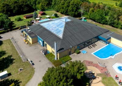 In unserer familienfreundlichen Badelandschaft garantieren wir Ihnen das Erlebnis! Neben einer großen 50 Meter langen Erlebnisrutsche können Sie auch das Meeresfeeling im Wellenbecken, verschiedene Sprungtürme im 25 Meter langen Schwimmerbecken, unseren Strömungskanal und Wasserfall genießen.